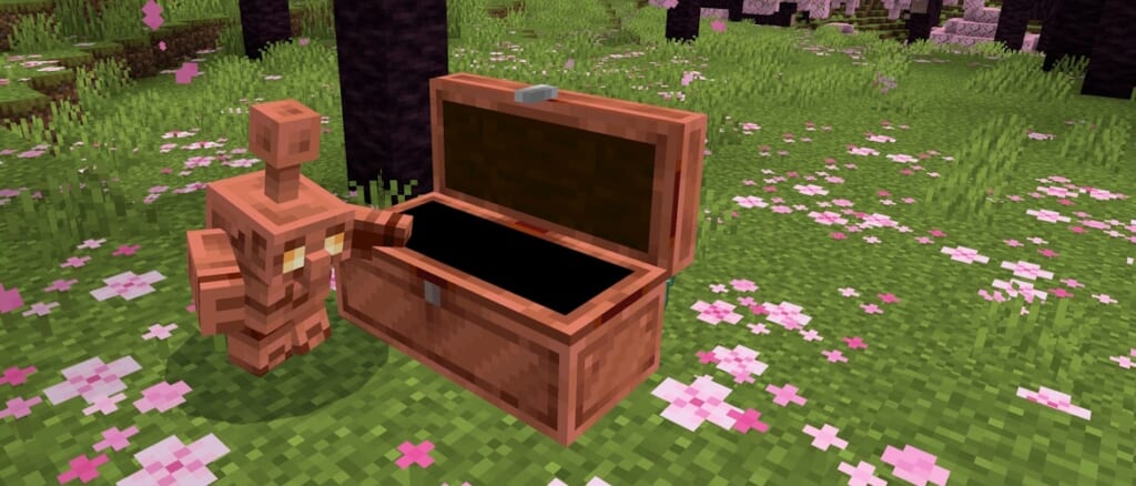 銅ゴーレムや銅のチェストなどの新機能は、統合版の実験的機能、またはJava版の最新プレビューで遊ぶことができます。