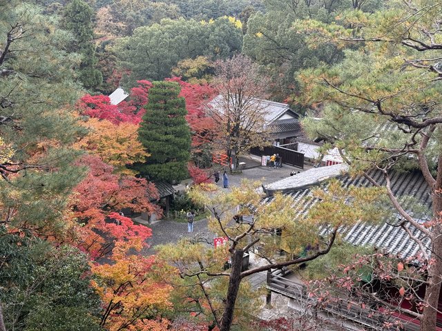 境内は四季折々の自然に包まれ、特に秋の紅葉は見事で、多くの参拝者を魅了します。赤・黄・緑があざやかに混ざり合う11月下旬、まさに見頃の時期に伺いました。