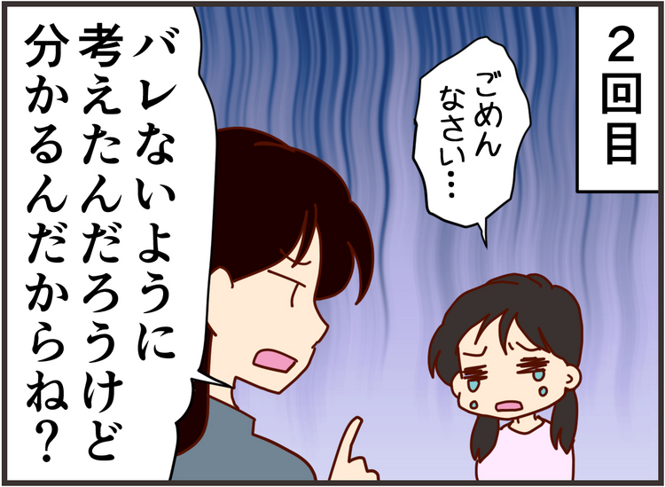 まぁ、確認したら出るわ、出るわ、2万円近くをこっそり隠していました。そこまで気づかない私もどうなんだって、夫にツッコミを入れられつつ、今回はコンビニでちょっとおやつを買って、友だちに気前よく振る舞った、というぐらいでした。今回は証拠が残りにくい、おやつにしたようです。使った金額自体は少額だったので、次はないよと釘を差しました。泣いて謝って、もうしない!としょんぼりしている姿を見て「バレないようにやろうとして失敗した」のだろうと思いました。さすがに、バレないようにお金を勝手に使うなんて無理だと悟って、もう二度とやらないだろうと思っていました。