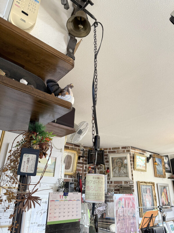 スタッフが不在の場合は、入り口そばに吊り下げられたチェーンを引っ張ってチャイムを鳴らしてくださいね。