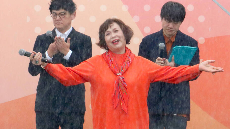 続くステージでは、Rockon Social Clubと人気芸人による「ええねん」、さんまさんが歌う「あみだババアの唄」、浅田美代子さんの名曲「赤い風船」など、笑いと懐かしさが交錯するステージに。2度目のコントには横山英幸大阪市長も登場し、会場をさらに盛り上げました。