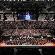 ラストを飾ったのは「笑顔のまんま」。さんまさんをはじめ出演者がステージに集まり、会場全体が一つに! この日初披露となった新曲「さんま DE サンバ」では、出演者がサンバのリズムで踊りながらフロートに乗り込み、「生きてるだけで丸もうけ」と描かれたバルーンが夜空に浮かぶ中、感動のフィナーレを迎えました。