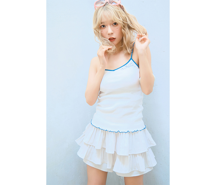 白のスカートなんですが、「え!このスカートかわいい!撮影で使おうよ!」って言われて急遽採用されました!