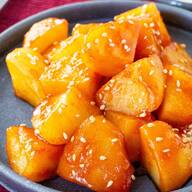 ④ フライパンに【A】を入れ、中火でとろみがつくまで加熱する。③を戻し、弱火でたれをさつまいも全体にしっかり絡める。黒いりごまをふりかけたら、完成!
