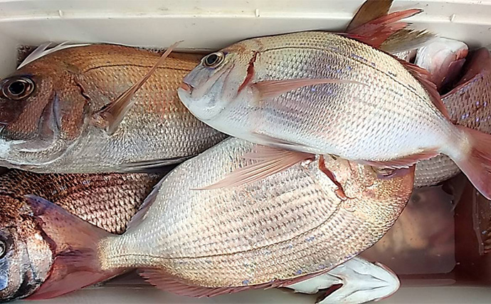 外房・片貝の直栄丸では、ハナダイ五目狙いで出船中。11月1日(土)、片貝沖の水深30mで23~41cmハナダイ25~40尾にイナダ、カンパチ、サバ多彩にクーラー満タンに。今後も良型期待大。次週8日土曜日も出船予定で予約受付中。