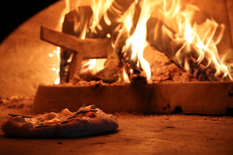 総席数100と今までの店舗のなかでは一番広く、店内には薪釜があります。