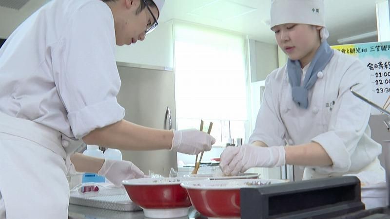 高校生レストランで知られる北海道の三笠高校の生徒たちが、新たなお土産品を開発し、試食会が開かれました。