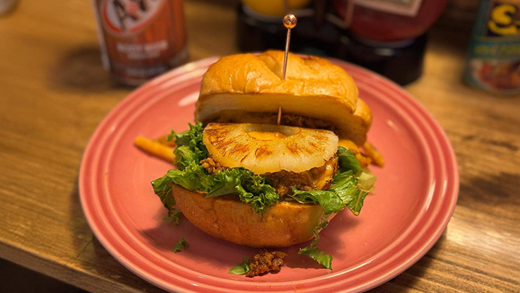 さらに、OCEANのスロッピージョーはハワイ風にアレンジしたバージョン。パイナップルを加えて、果汁がジューシーさを演出。ハンバーガーと同じ材料だが、一味違う新しい感覚のスロッピージョーは、食べ進めるたび手が止まらなくなる、OCEANならではの人気メニューです。