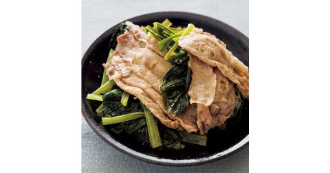 豚肉は切らずに、豪快に仕上げます。食べごたえ満点! 小松菜がモリモリ食べられます。