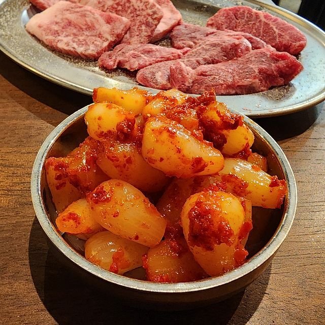 一緒に野菜類も欲しいなあとお願いした「らっきょうのキムチ」¥480なり。こんなにてんこ盛りで良いのか!なのですが、酢漬けしたらっきょうをキムチダレで再度漬け込んだもののようです。これは白飯のお供に最適ではないかと思ったお気に入り。