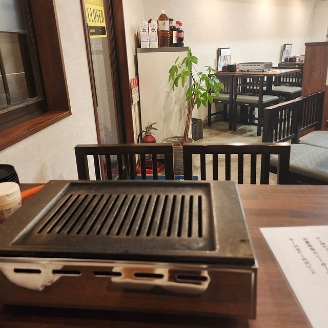 焼肉店とするとスッキリとした店内。4人掛けテーブル4卓、全16席のこじんまり店。ご店主が1人回しておられました。