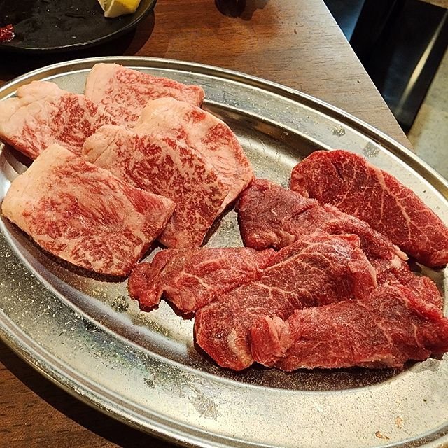 こういうレギュラーに追加された別メニューも。(カレー!に即反応・・汗)これを1人でこなすか~と感心しつつ、いつものごとく「上タン塩」¥1080、上カルビ、骨付きカルビ、ハラミが盛り合わせになった「赤身盛り」¥3580、それに「自家製ナムル盛り」¥780をまずは注文。