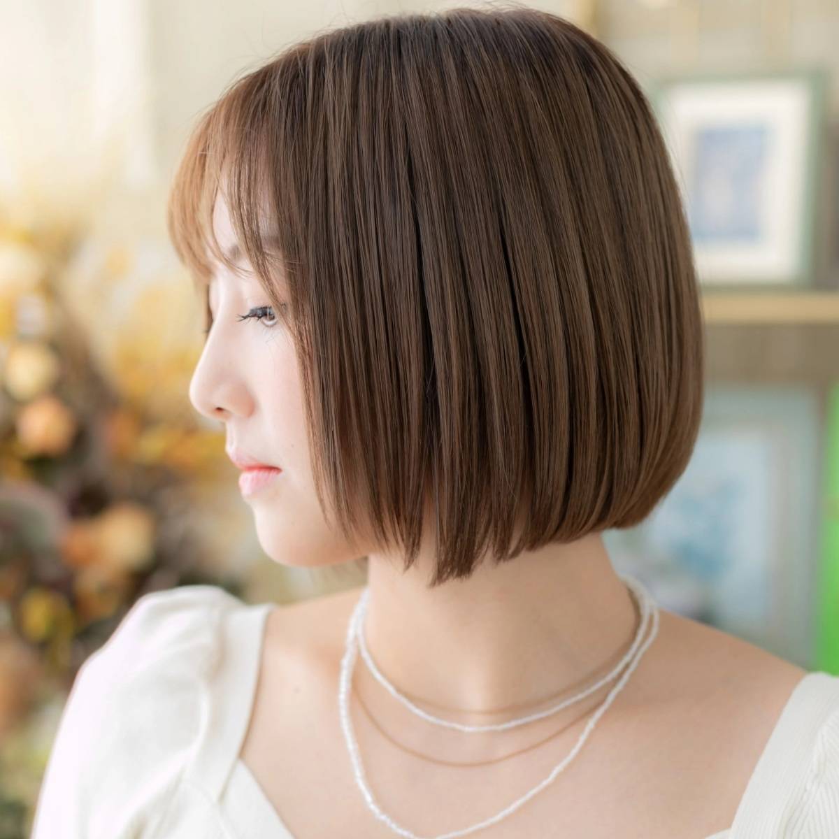 【2025年晩秋】年齢より若く見えるボブ▶マロンベージュの前下がりボブ