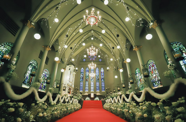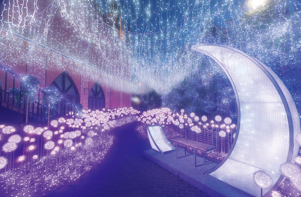 200年以上前に建てれられた南フランスの教会を移設した「宮の森フランセス教会」。大聖堂とガーデンを幻想的に彩るイルミネーションは必見。美しいステンドグラスが目を引く空間で行なわれる、聖なる夜の礼拝にも参加できる。