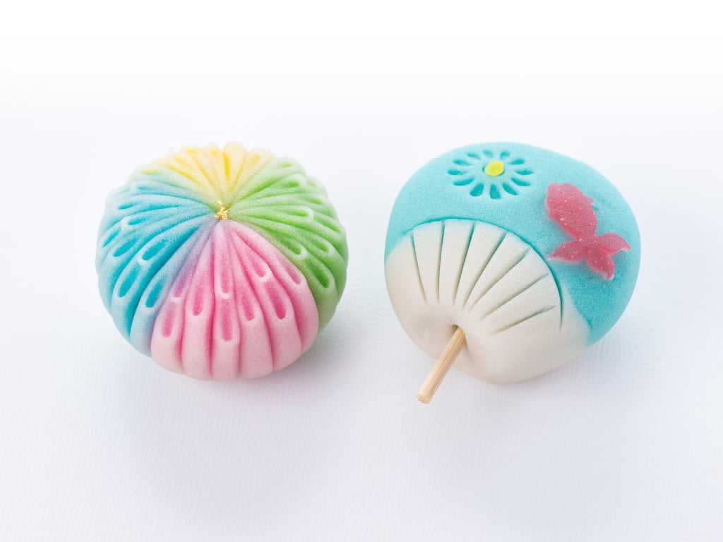 今回のポップアップストアの目玉は、大阪初登場となる和菓子「花火」。夏の夜空に咲く大輪の花火とうちわをモチーフに、練り切りで仕立てたかわいらしい上生菓子です♡