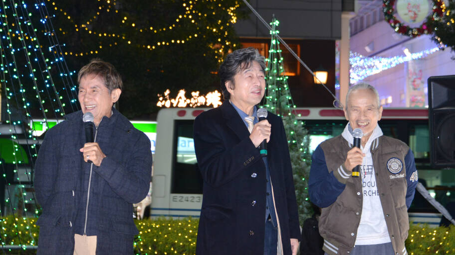 くるま出演シーンからは、紙エプロンを着用し、思いを馳せるような表情で由嘉里にトークを披露する瞬間の場面写真と、撮影に挑むくるまの姿をとらえたメイキング写真が。加藤出演シーンからは、場面写真に加え、松居監督と打ち合わせをする姿や、自身が描いた松居監督の似顔絵との2ショットと、和やかな撮影裏がとらえられたメイキング写真が公開された。