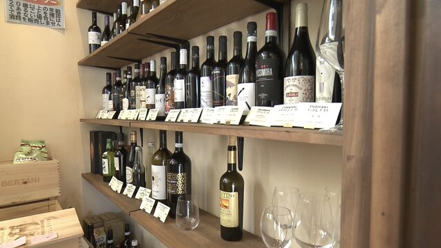 お店の奥には店主がテイスティングし厳選したワインがズラリ。
