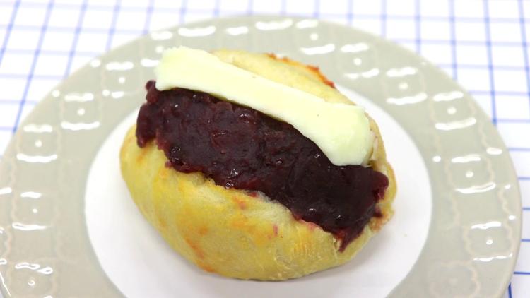 表面にクッキー生地をのせて焼いた、サクサク食感が楽しいおやつパン。