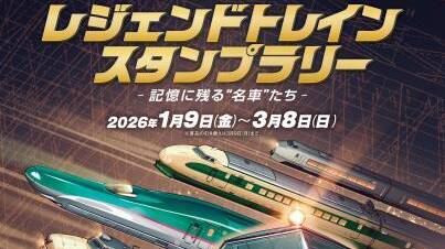 東日本旅客鉄道株式会社(JR東日本、東京都)は、記憶に残る名車を巡るイベント「JR東日本 レジェンドトレインスタンプラリー -記憶に残る“名車”たち-」を2026年1月9日から3月8日まで開催すると発表した。
