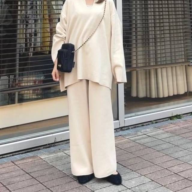低身長さんにおすすめ!秋に穿きたいワイドパンツ③sweat style knit pants
