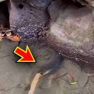 戻ると川底が露出して釣りができなくなるギリギリの状態。しかし、こんな浅くても釣れるのがシーバスなのだ。バイブレーションルアーを竿を立てて早巻きすると、途中でドスンと止まった。