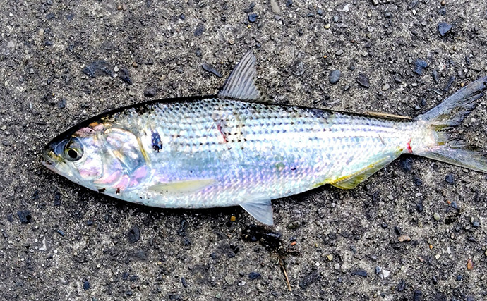 これはチャンスとみて、その周辺をバイブレーションで探ると、ガツン!と小さめのアタリがくる。ピチピチしながら上がってきたのは、丸々太ったコノシロだ。ここから「コノシロゲーム」が始まる。