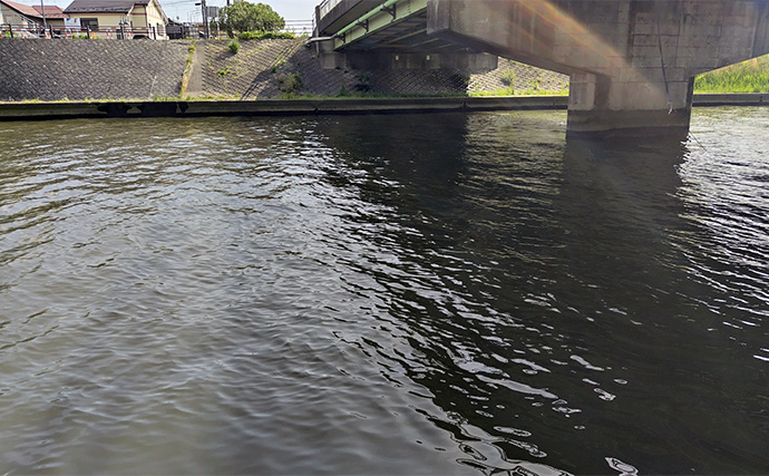 11月18日(大潮)、産卵を意識した良型シーバスを求めて千葉県村田川へやってきた。まだ明るいデイゲームから釣りをスタートさせる。上を国道が通る橋脚周りを探ると、何やら大量の小魚が集結している。