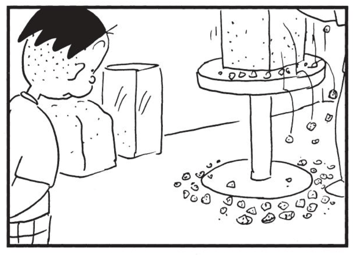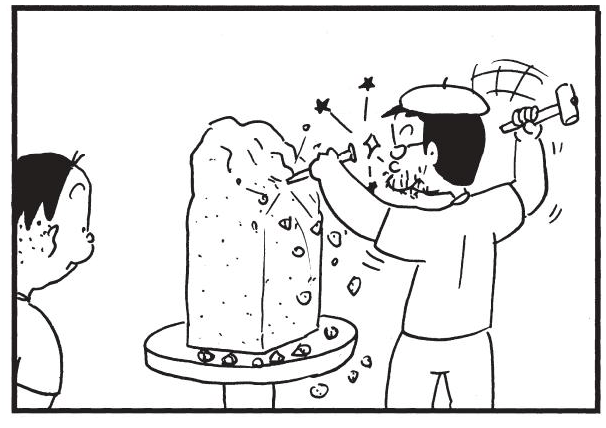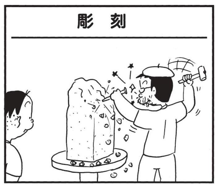 朝イチ更新!4コマ漫画『かりあげクン』彫刻作品に興味津々…?