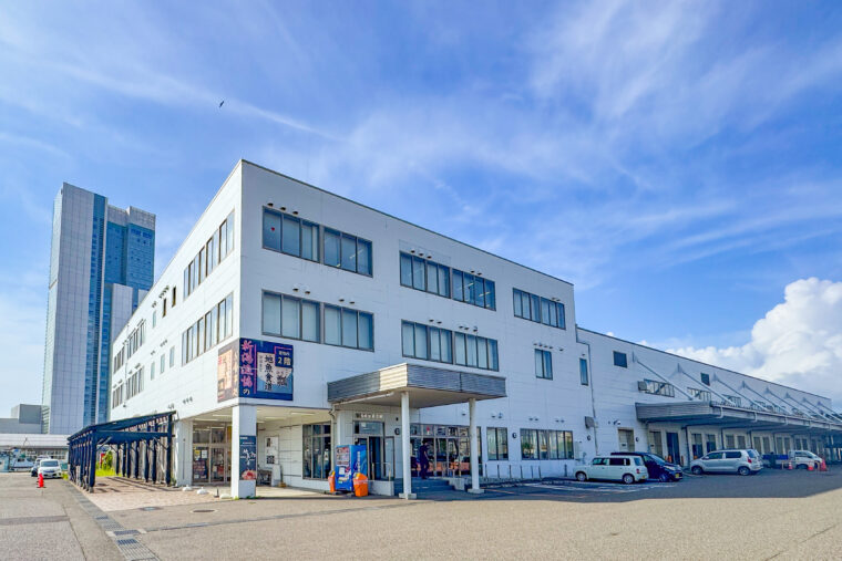 水産会館は魚の卸を行なう新潟漁業共同組合地方卸売市場が入った建物で、観光客にも人気のピアBandaiの隣です。