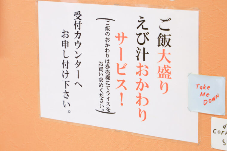 さらにはご飯の大盛りとエビ汁のおかわり無料といううれしいサービスも付いてとってもお得。