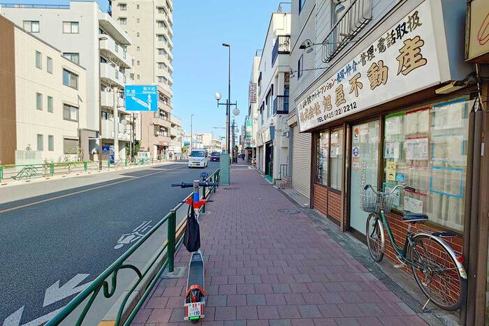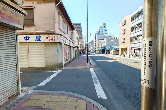 『田中屋』や『新藤青果店』、『サイクルセンター シバタ』などの老舗店が並ぶあたり。