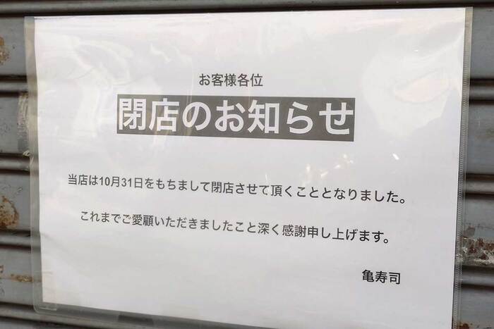 《閉店》老舗の寿司屋が……。高松町・立川通りぞいの『亀寿司』が10月末で閉店してる