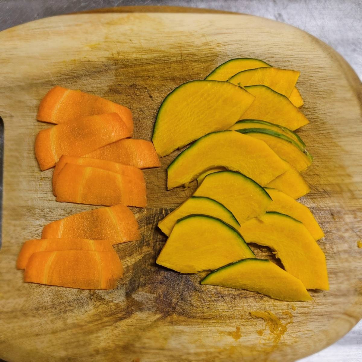 かぼちゃはほんのり甘く、にんじんは青くささが抜けて食べやすいです♪