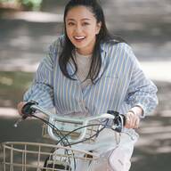 長袖トップスとデニムパンツの組み合わせは10月の気候によく合う一方、シンプルゆえに老け見えしてしまうかも……。
