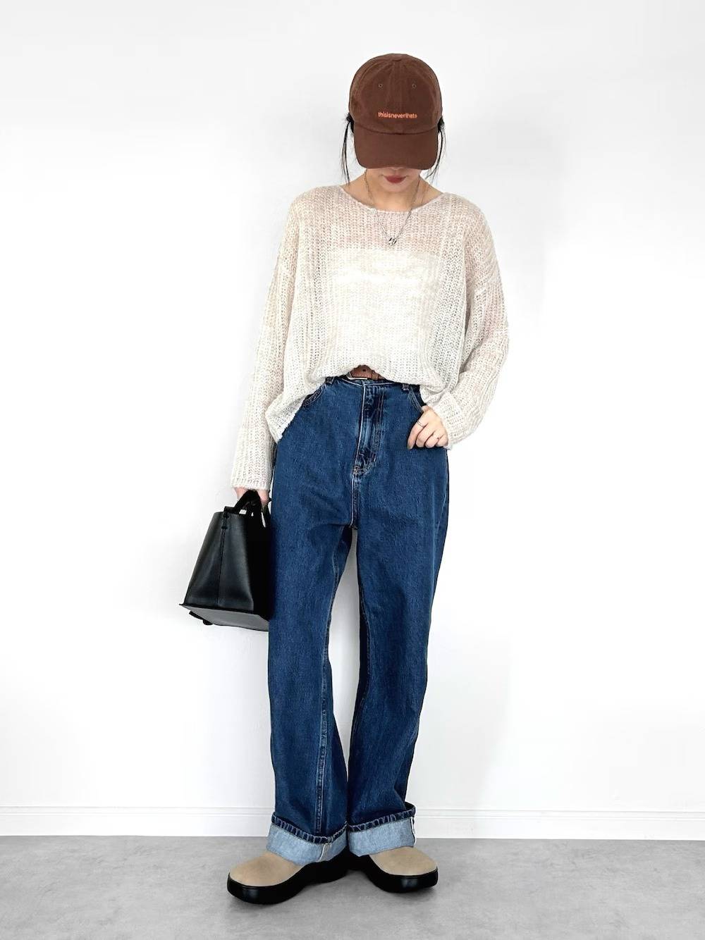 【10月編】老け見えしないデニムパンツコーデ②シアーニットを合わせる♡