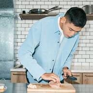 次は茹でる作業。まずは鍋に水を張り、酢、こい口しょう油、塩を少し加える。これを火にかけ沸騰したら、マダコを投入。少し赤くなったところでお湯から取り出す。「茹でる」と「霜降り」の間くらいがちょうどいい。要は半生ということになる。
