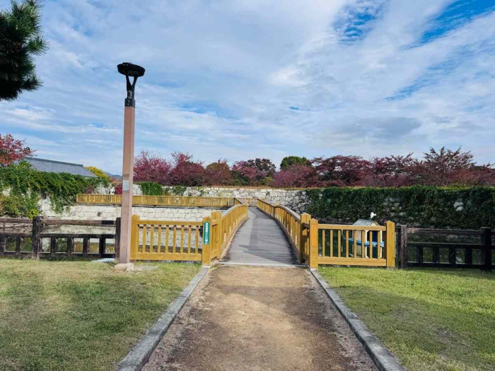 途中には、池泉回遊式の大名庭園で国指定名勝に登録されている赤穂城『二之丸庭園』へと続く門もあります。