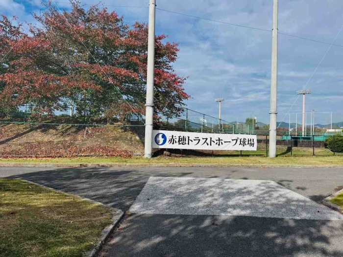 今回は公園の駐車場方面、『赤穂トラストホープ球場』前からウォーキングをスタート。