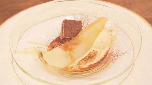 続いて期間限定のスイーツ「ル レクチエの低温コンフィ キャラメルフレンチトーストと共に」をご紹介。