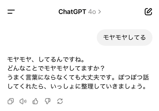 たとえば、「モヤモヤしてる」という一言だけでも、会話型AIは少しずつ気持ちを引き出してくれます。会話を続けるうちに、「あ、私こう思ってたんだ」と着地でき、心がスッと軽くなります。