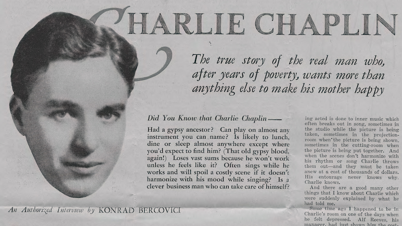 予告編は、『独裁者』(1940)の髭剃りシーンで使われている楽曲「ハンガリー舞曲第5番」のリズムに名作や貴重なプライベート映像を乗せた映像で始まり、放浪紳士から父親としてのチャップリンまで、壮大な人生をコミカルに映し出す。ロマ音楽に影響を受けている作曲家ブラームスの楽曲をアレンジした『黄金狂時代』(1942年サウンド版)のテーマ曲に切り替わると、これまであまり知られてこなかったチャップリンの出自が明かされる。