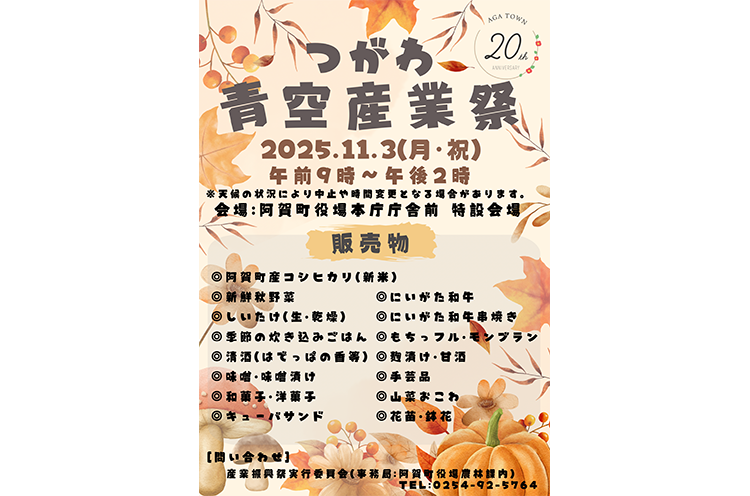 阿賀町産の新米コシヒカリや新鮮な秋野菜、にいがた和牛など、阿賀町グルメが楽しめる秋の恒例イベント『つがわ青空産業祭』。