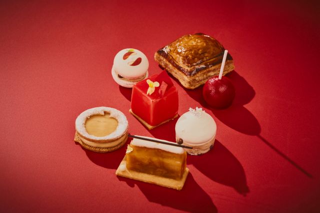 甘く煮詰めてキャラメリゼしたりんごの「タルトタタン」、コロンとした見た目が愛らしい「りんご飴風のりんごジュレ」、美しい赤色の「りんごムース」など華やかなスイーツがラインナップします。