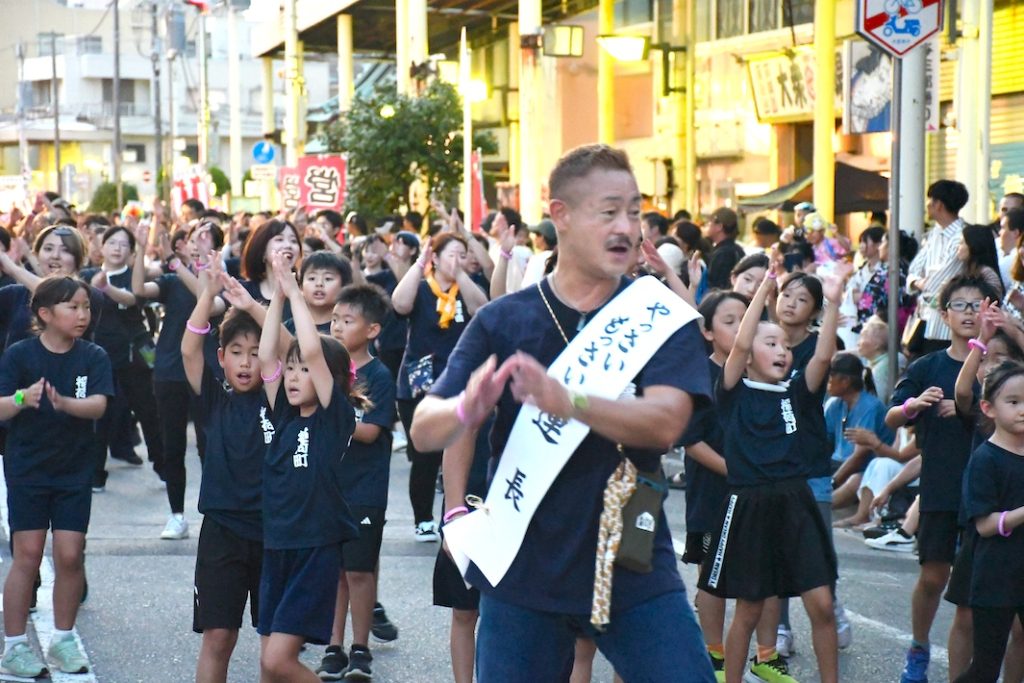 木更津の言葉で「おお、そうだよ」という意味の「おさ、おさ、おっさ」の掛け声に乗って全ての連(チーム)が大賞目指して舞い踊り、会場は踊り手と見物人で埋め尽くされます。