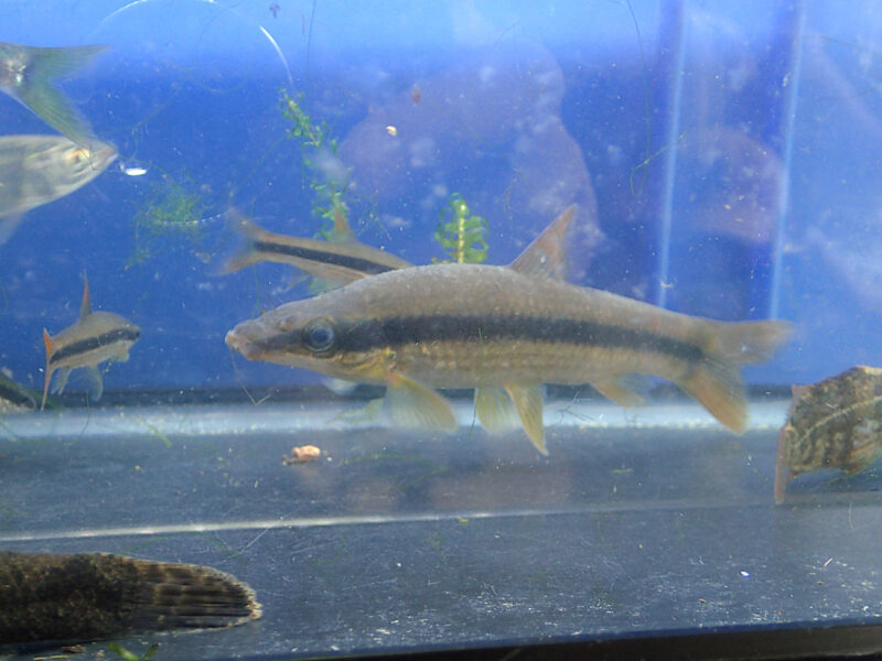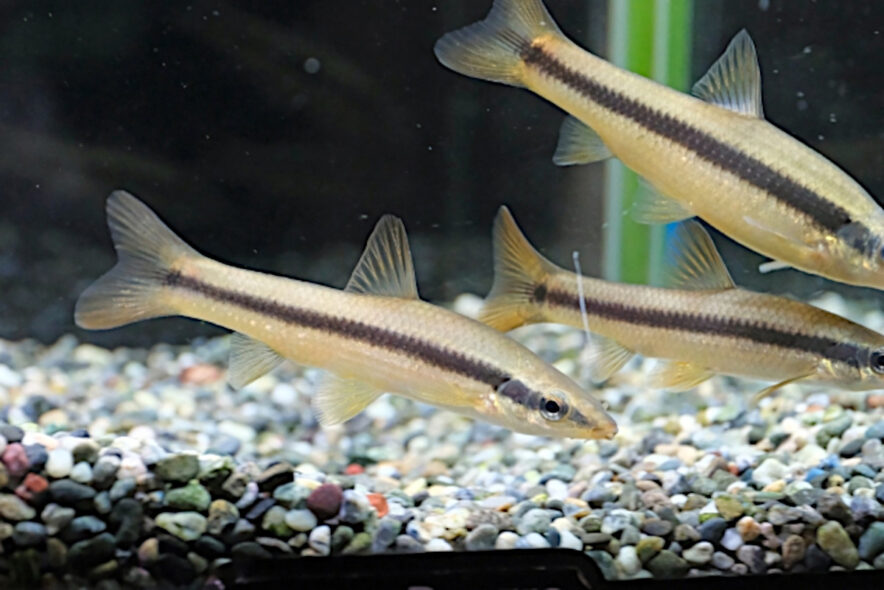 ムギツクは、体の側面に綺麗な細い黒色帯状の模様をもつ淡水魚です。