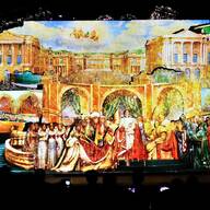 地元の小学生が描いた平和の花をプロジェクションマッピング