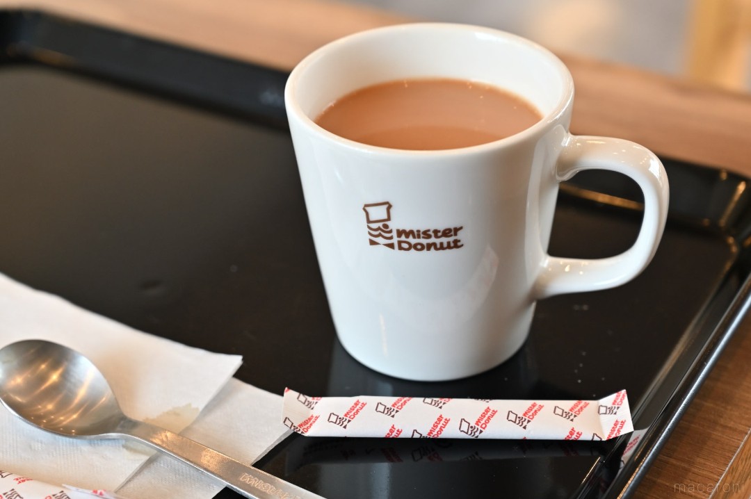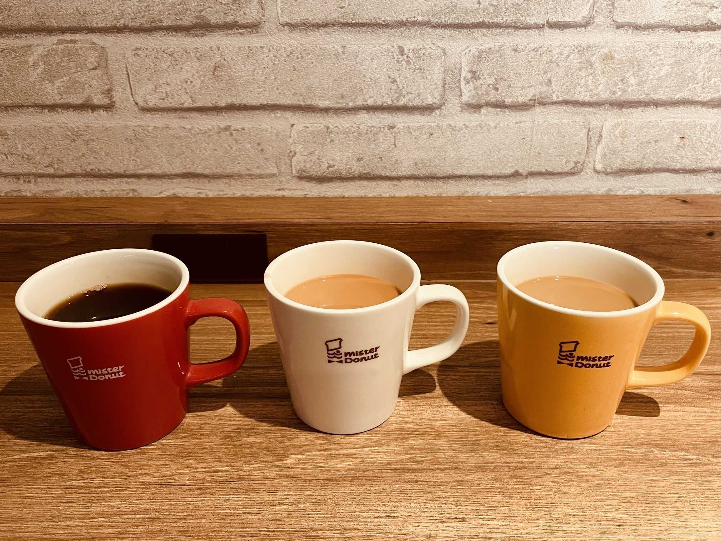 ミスタードーナツでは、コーヒー、カフェオレ、ミルクティーの3種類がおかわりできます。1杯分の料金でおいしいドリンクが何杯も飲めるって、うれしいですよね♪ ゆったり過ごしたいときに最高です。