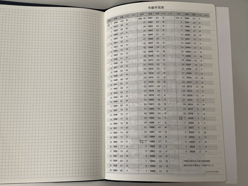 巻末の付録ページを見ていると、年齢早見表というページがありました。