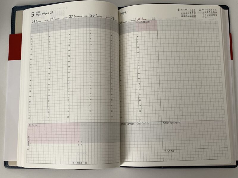ただ、毎回自分で表を描くのは少し手間だったので、はじめから組み込まれているこの手帳に惹かれました。