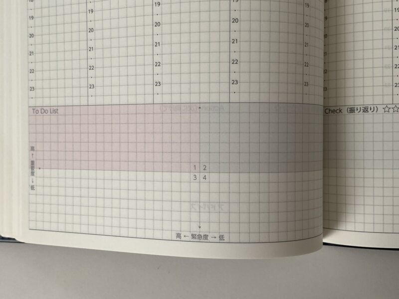 この手帳を使いたいと思った理由は、「重要度×緊急度マトリックス」を書き込める表が用意されているからです。